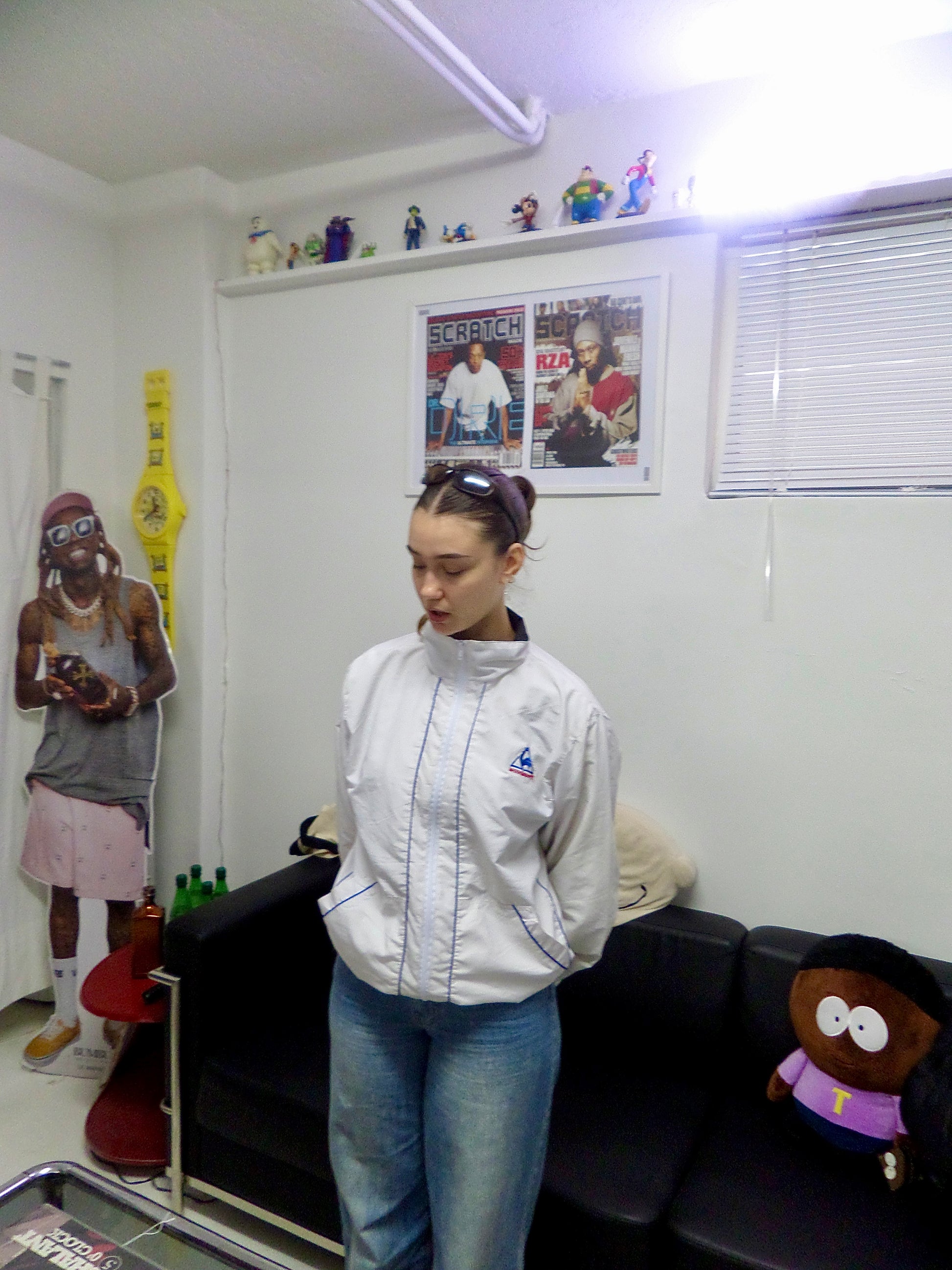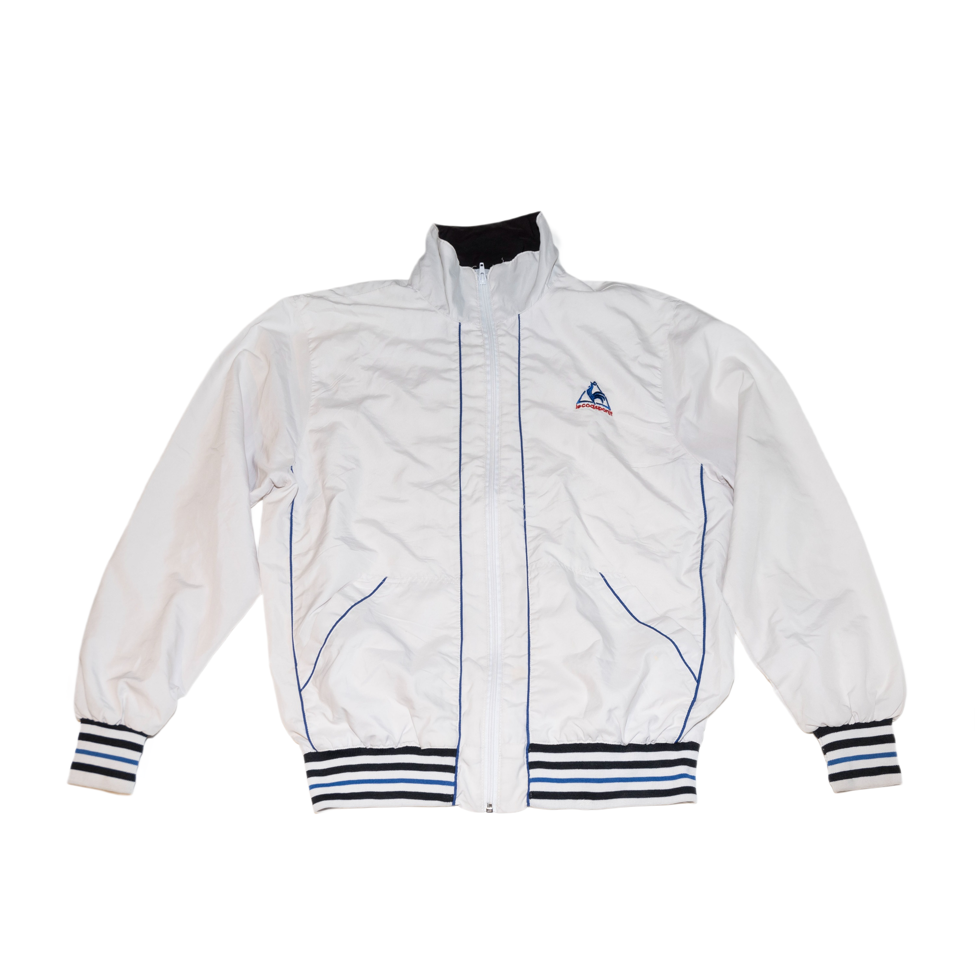 This Le Coq Sportif zip-up combines timeless style with modern comfort. Condition 8/10. Though sized XL, it fits like a medium, offering a tailored, flattering look. The interior features a breathable net lining, ensuring ventilation and lightweight wear throughout the day. Perfect for those seeking a versatile jacket that blends heritage design with practical comfort.